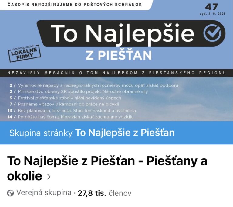 FB skupinu "To Najlepšie z Piešťan - Piešťany a okolie".